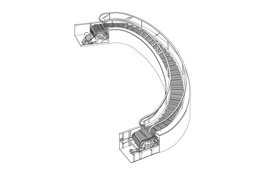 三菱電機ビルソリューションズのみが製造できる技術を持つ、弧を描くエスカレーター。その曲線は美しくユニークで、現代建築の空間設計に強い影響力を発揮しています。部品も特殊なチェーンを用いており、独自のメンテナンスで芸術性と機能性を保ちます。